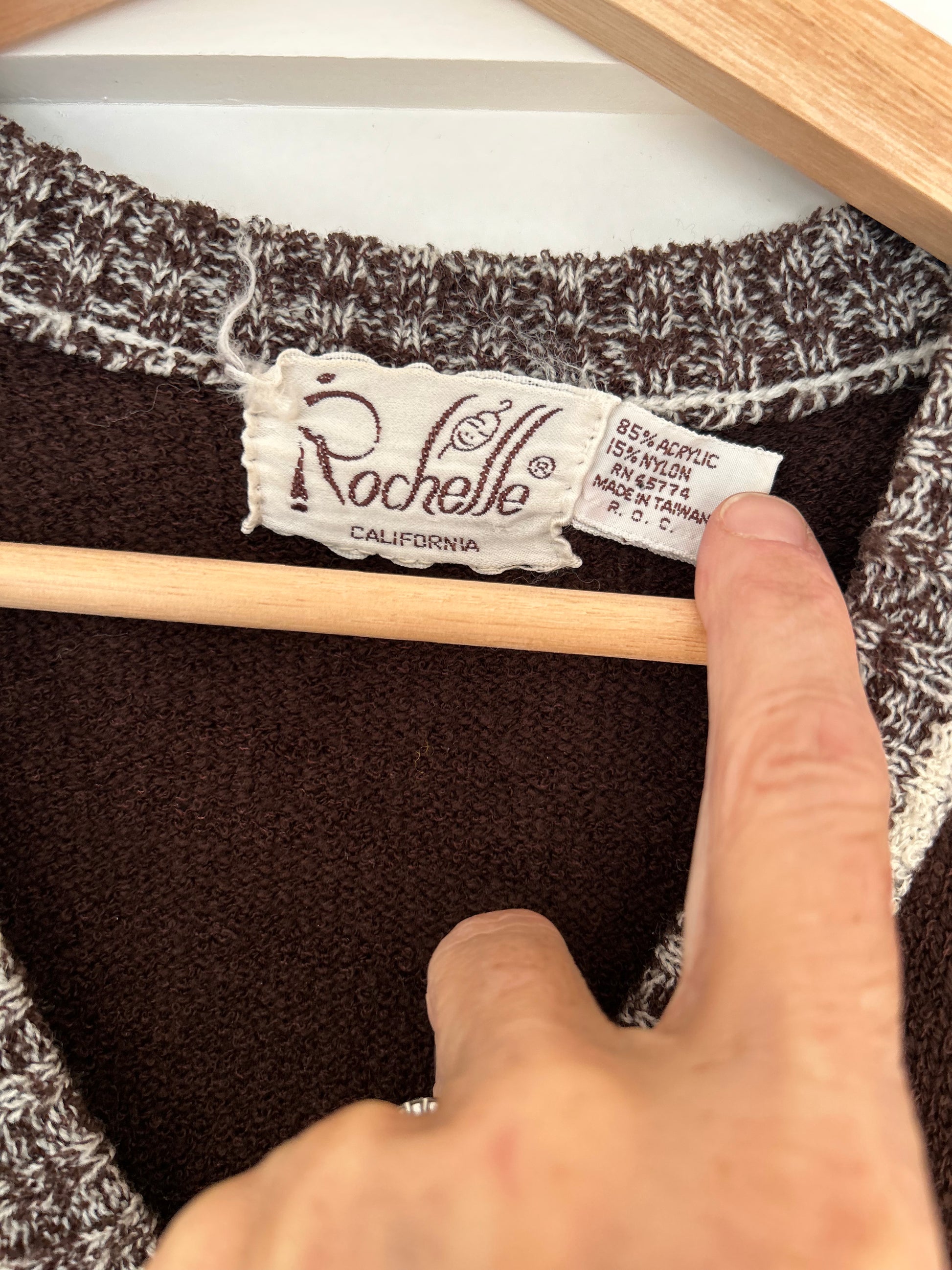 Made in Taiwan. Good condition. Chocolate/Ivory. Acrylic/Nylon blend